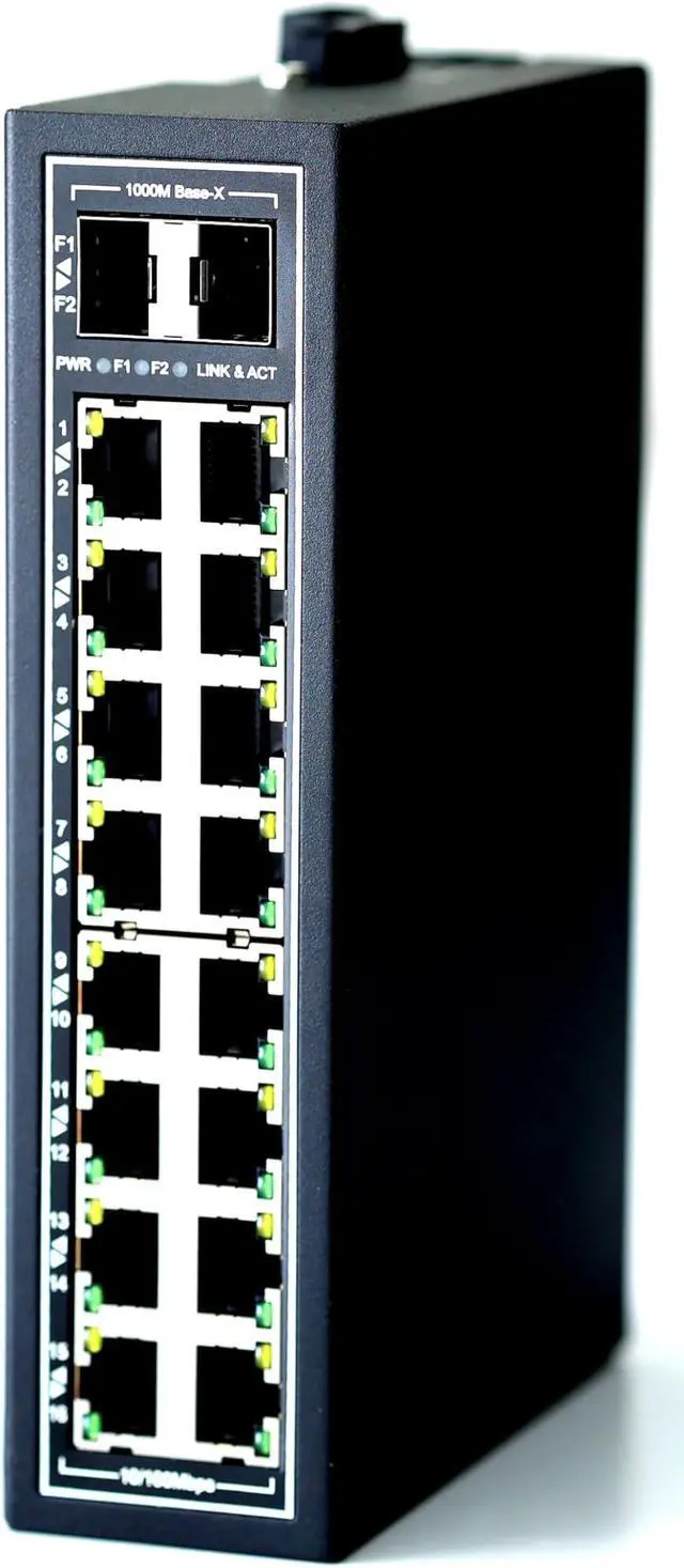 MINIATURIZED DESIGN - Compact 18-port Ethernet switch with 10/100Mbps automatic MDI/MDI-X crossover for plug-and-play. Easy to use and DIN rail mountable with built-in bracket,Robust IP30-rated housing.