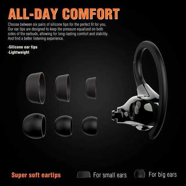 EDKKIE Wireless Bluetooth Earbuds for Small Ears Canal, Running Headphones with Microphone, IPX7 Waterproof, Noise Isolation Wireless Earphones for Sport and Working Out