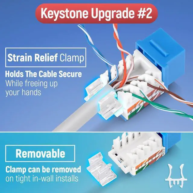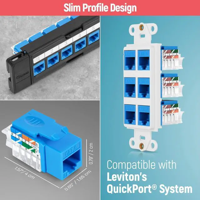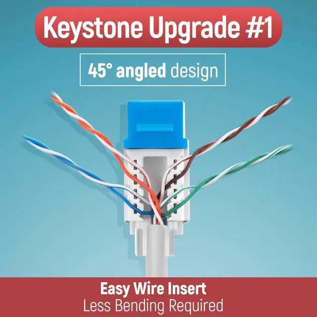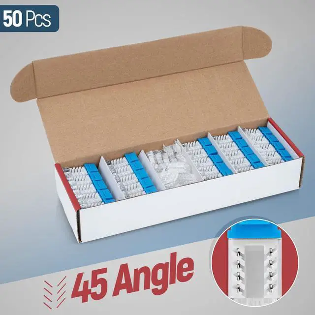 • Product 3 - 45° Angled CAT6 Keystone Jack in Blue - Slim Profile RJ45 Ethernet Connector - Compatible with 45° Angled Speed Termination Tool - 45Term (B0BL3GS7ZY) - 50-Pack