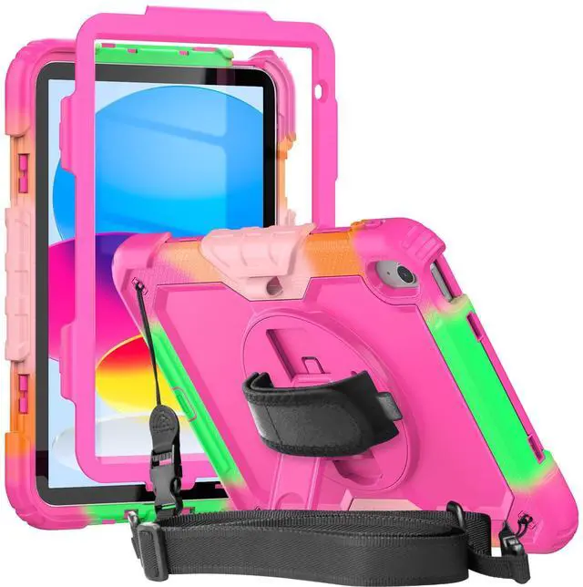 Herize Case Compatible with iPad (A16) 11th/10th Generation Colorful for Girl with Screen Protector Pencil Holder ^^ Shockproof Rugged Protective Case W/Kickstand Hand Strap Shoulder Strap
