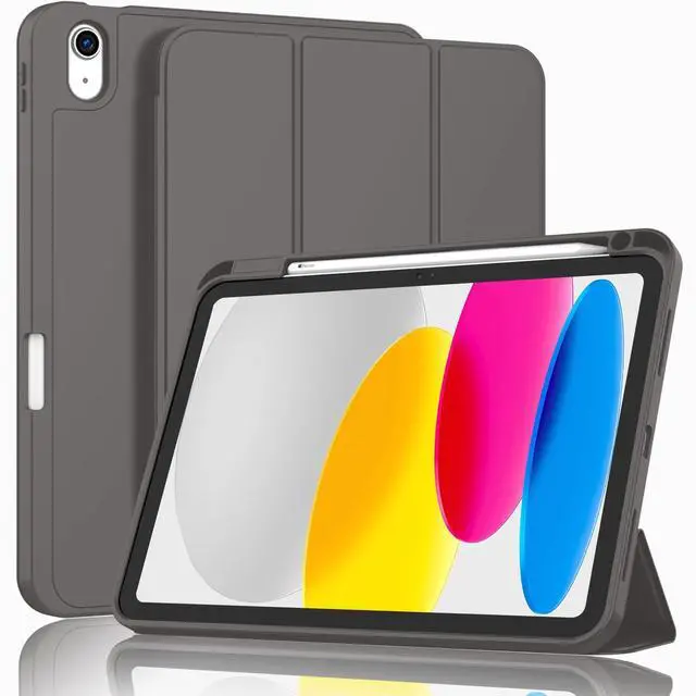 ZryXal iPad (A16) Case/iPad 10th Generation Case [11-Inch 2025/10.9 Inch 2022] with Pencil Holder, Smart Cover with Soft TPU Back [Support Auto Wake/Sleep] (Space Gray)