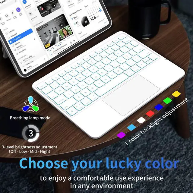 7 Colors Backlit KeysThis detachable magic keyboard keys adopt a scissor structure and equipped with 7 different backlight colors and 3-level backlight brightness (Off/Low/Medium/High/Breathing mode). Even in dim environments, it can provide you with an excellent typing experience