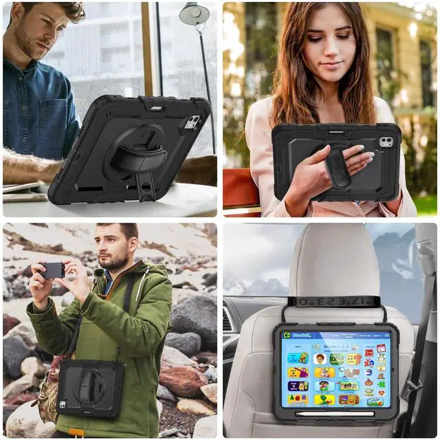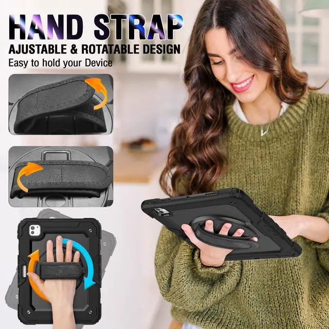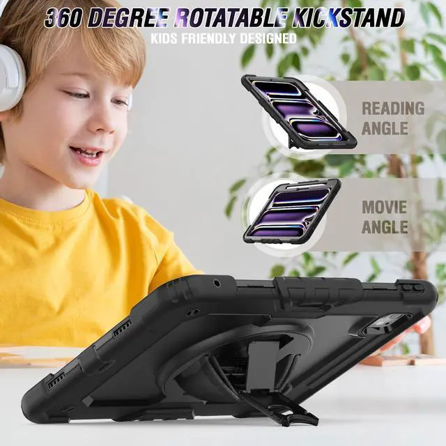 Built-in 360 Rotatable Kickstand + Hand Strap : 360-degree rotating swivel stand supports position of 3 angles(Vertical, Horizontal, and Halfway between), ideal for watching videos, conferences and travelling. Soft rotating handle strap prevents falling of iPad Pro 13 7th Generation tablet, featuring convenient use for school teachers, students, waiters, doctors, nurses and conference presenters.