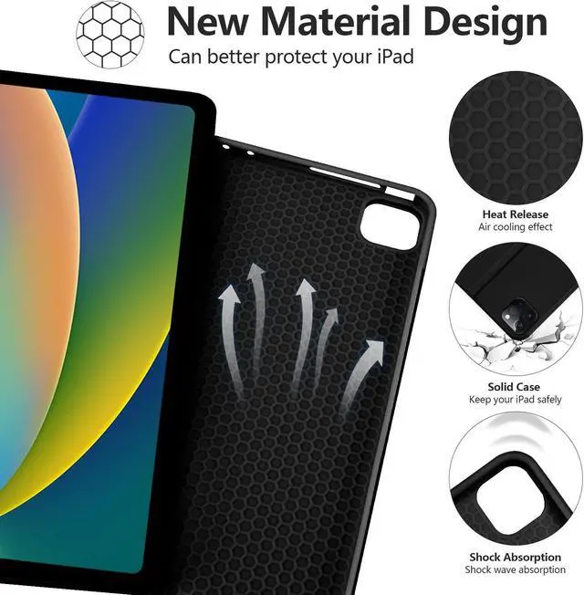 Heat release & for iPads whole body protection: IPads pro 12.9 inch case with keyboard comes with honeycomb grid pattern design is better for heat release and anti-skid.Thoughtful design to effectively extend life of your beloved iPads.Solid keyboard case and wave shock absorbtion give comprehensive protection for your IPads Pro 12.9 Case 6th/5th Generation & for iPads air 13 inch from scratches and damage.