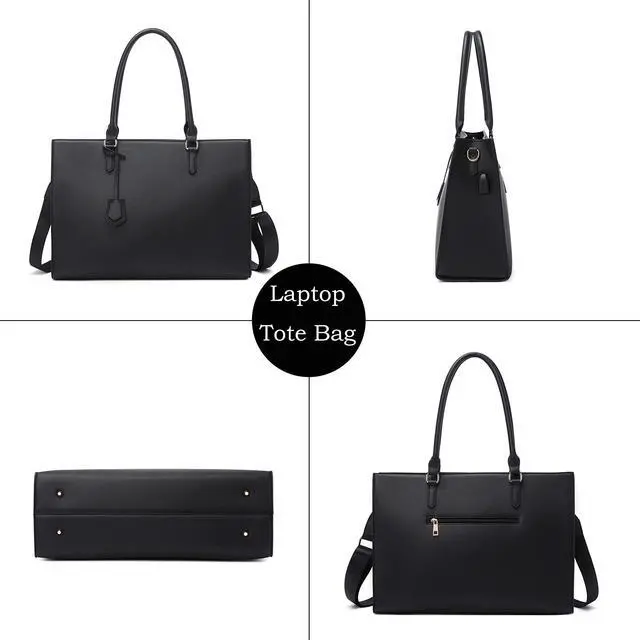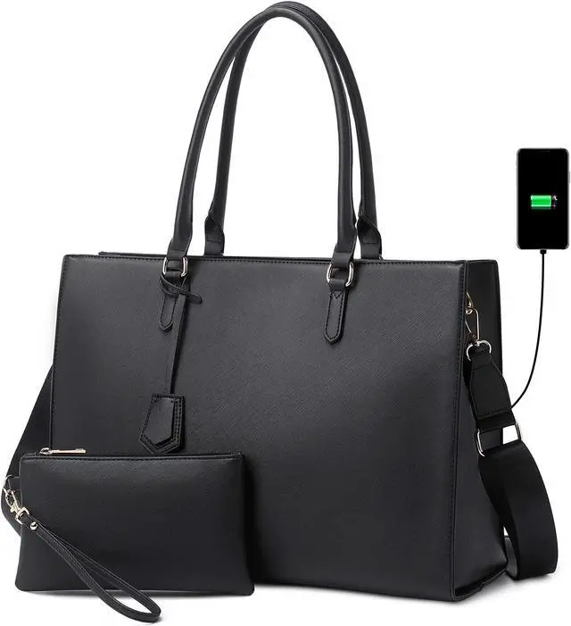 Laptop Tote Bag for Women - 17 inch Casual Work Bag with USB Charging Port & Clutch Purse (Black)