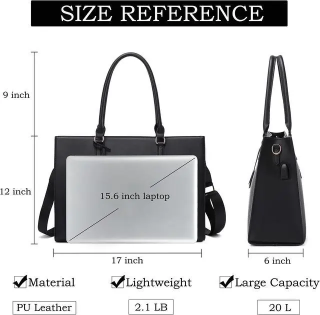 Perfect Size Laptop Tote Bag - Perfect Size: 17*6*12"/43*15*30cm(L*W*H), suitable for 15.6" (including 13/14")Ipad laptop computer. Cylindrical handles for added comfort, and the long adjustable shoulder straps are easy to remove so you can easily hold it in your hand or wear it cross-body. Weighing only 2.1 lbs, this women's laptop bag makes it easy to carry for any occasion.