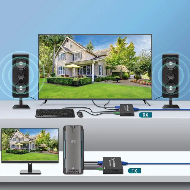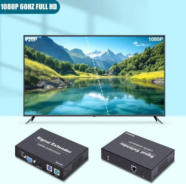 394 ft (120 m) Long-Haul Transmission: Extends VGA, keyboard, and mouse signals over Cat5e/6/7 up to 120 m, with automatic video level adjustmentno fine tuning needed for remote control rooms, digital signage, or industrial setups.