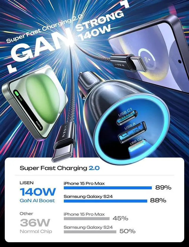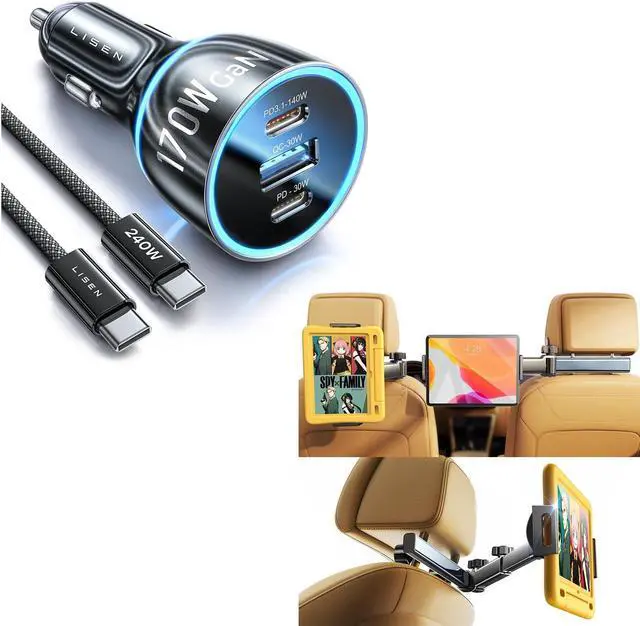 Enjoy Tablet Fast Charging with 170W GaN USB C Car Charger
