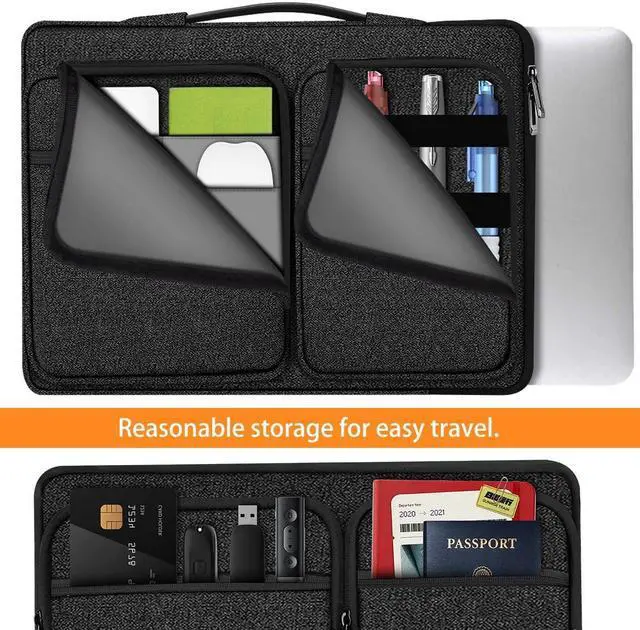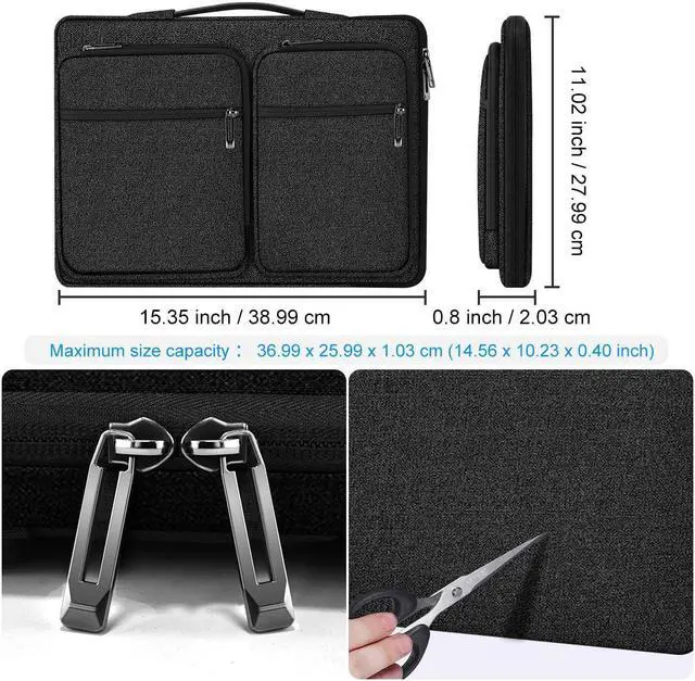 Dimensions: This laptop case inner size: 15 x 10.6 x 1.6 inch (L x W x H); One compartment for 15 15.6 16 inch laptop, the additional 5 pockets storage space keeps the items well-organized, such as your mouse, earphone, mobile phones, cables, pens or laptop accessories. with a modern slim and lightweight design to accommodate daily use and protection needs