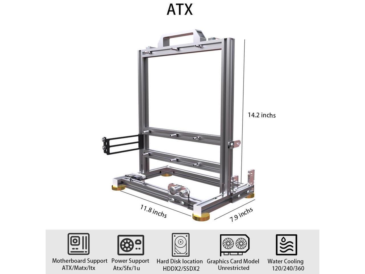 DIY Open Frame PC Chassis, Aluminum Computer Case, Supports ATX Motherboard, Excellent Cooling, Type-C Support