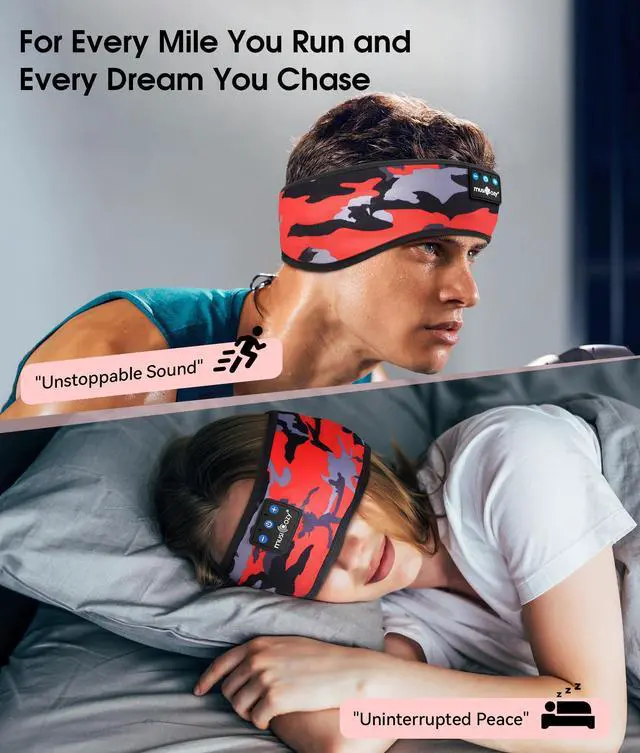 Bluetooth Sleep Headphones & Sports Headband MUSICOZY Headband allows you to listen to your music without having to wear additional headphones, and protect you from being disturbed by your mess hair and sweat. The stylish headband headphones are ideal for travel, sleep, workout, running, yoga, audio books. They block out ambient noise without using sleep ear buds that are painful & fall out.