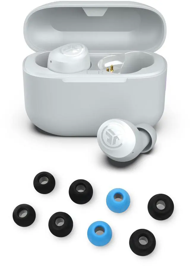 JLab Go Air Pop+ True Wireless Bluetooth Earbuds in White Plus Cloud Foam Mnemonic Earbud Tips