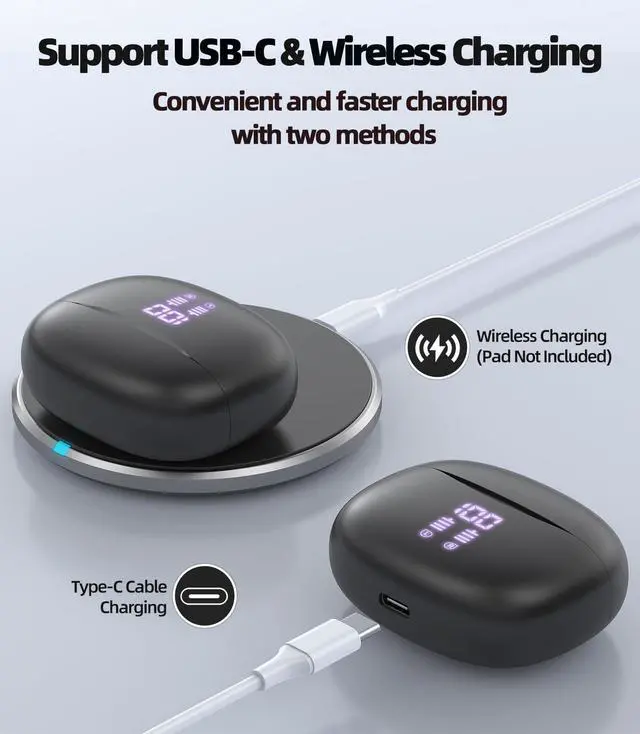 Wireless Earbuds, Bluetooth 5.3 Headphones [Support Wireless Charging] 40H Playback Deep Bass Stereo Earphones with Dual Mic Clear Calls with LED Display for iPhone Android TV Laptop Sports
