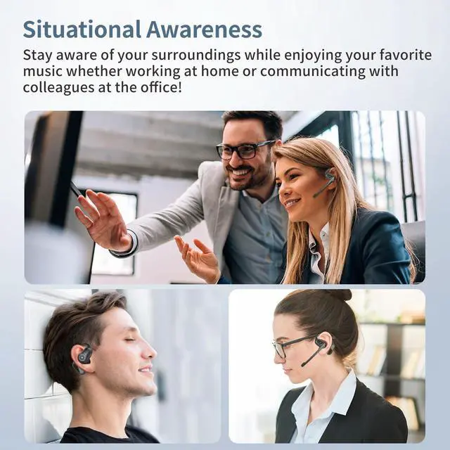 Extreme Comfortable Open Ear DesignOpen-ear headphone designed is ergonomically, keeps the ear canal clean does not harm the eardrum, comfortable secure fit that around the ears for hours of working! The single open ear earbuds weigh only 10g and is extremely lightweight, ear hooks are made of silicone and won't shift or fall off during sports and there are no cables to bind! Open-ear buds design allows to be aware of surroundings when listening to your favorite music.
