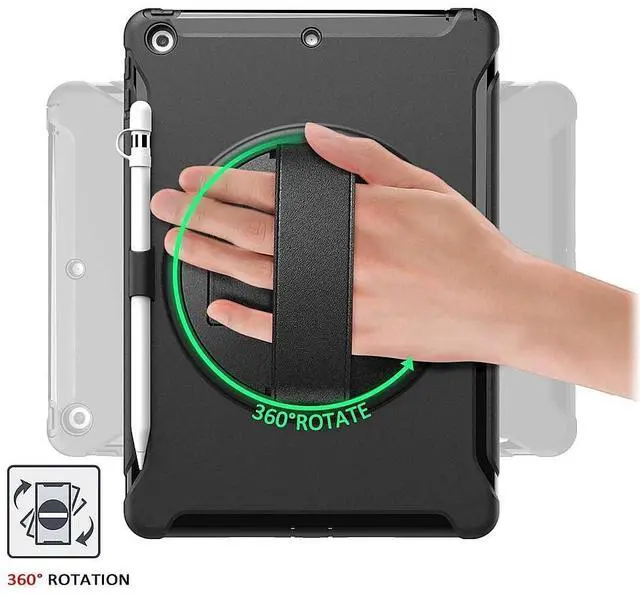 Sahara - Protection Hand Strap Series Case for iPad 10.2 (8th Generation 2020 and 9th Generation 2021), Black, (TB00078)