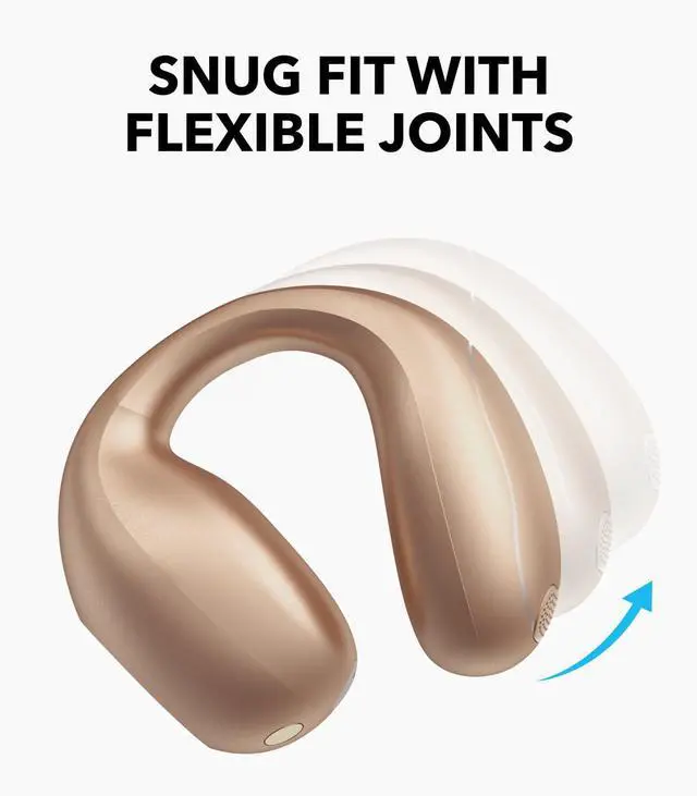 Snug, Flexible Fit: soundcore C40i clip-on headphones sport 0.5mm memory titanium wires and soft TPU for their flexible joints. They ensure 1,000-bend durability² and an adaptable fit, effortlessly conforming to your ears and staying securely in place throughout the day.