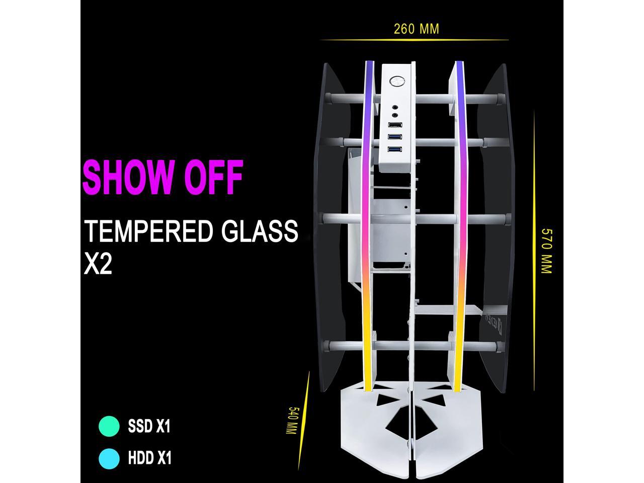 - [Powerful cooling ]-- C580 PC case is pre-installed 2 RGB luminous light boards. The unique open design can keep the GPU Temperature continuously low,making your computer work more smoothly.
