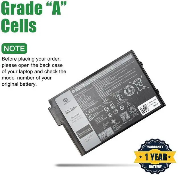 • Model: XVJNP // Voltage: 11.4V // Capacity: 53.5Wh 4457mAh // Color: Black // Type: Plug & Play Li-ion Battery.