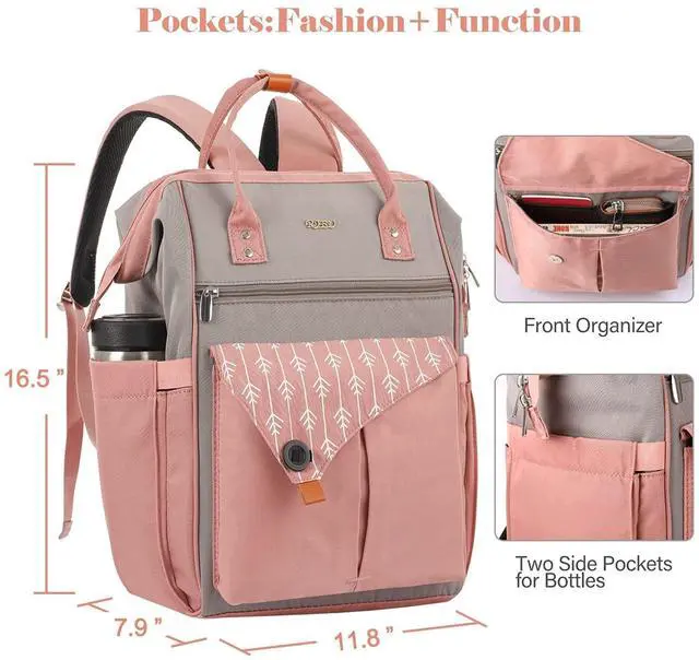 Looking to add a special touch? Explore our custom backpack and create a design that will be forever treasured. Laptop Backpack for women with charge port. With built in USB charger outside and built in charging cable inside, this usb backpack offers you a more convenient way to charge your phone while walking. Please noted that this backpack doesn't power itself, usb charging port only offers an easy access to charge. This is a Water-Resistant womens backpack, which can be used in drizzle days. Please do not expose it to heavy rain for a long time without any rain cover.