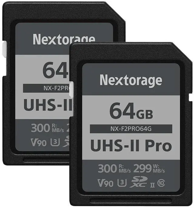 Nextorage 64GB 2pack SDXC UHS-II V90 SD Card Japanese Brand pSLC Max. Write Speed 299MB/s Max. Read Speed 300MB/s 4K Recording F2PRO Series 2P-F2PRO64G SDXC Card for Digital Camera