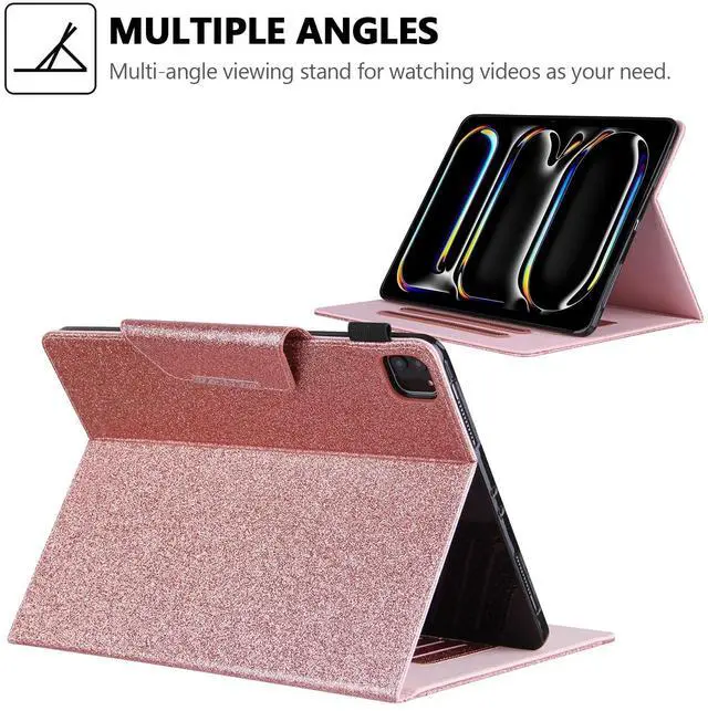 Protective iPad Pro 11" (M4) Glitter Case with ID Window / Card Slots and Apple Pencil Holder, Auto Wake / Sleep