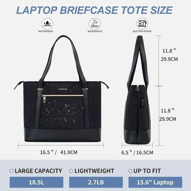 Waterproof Material & Durability: VANKEAN laptop tote bag made of high-quality quilted canvas and Durable leather, offers water-repellent and Wear resistance advantage. Dimensions: 16.5"x12.8"x5.6", which is suitable for your 14"-15.6" laptop.