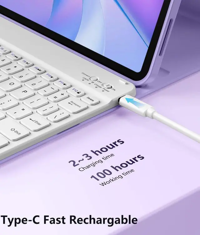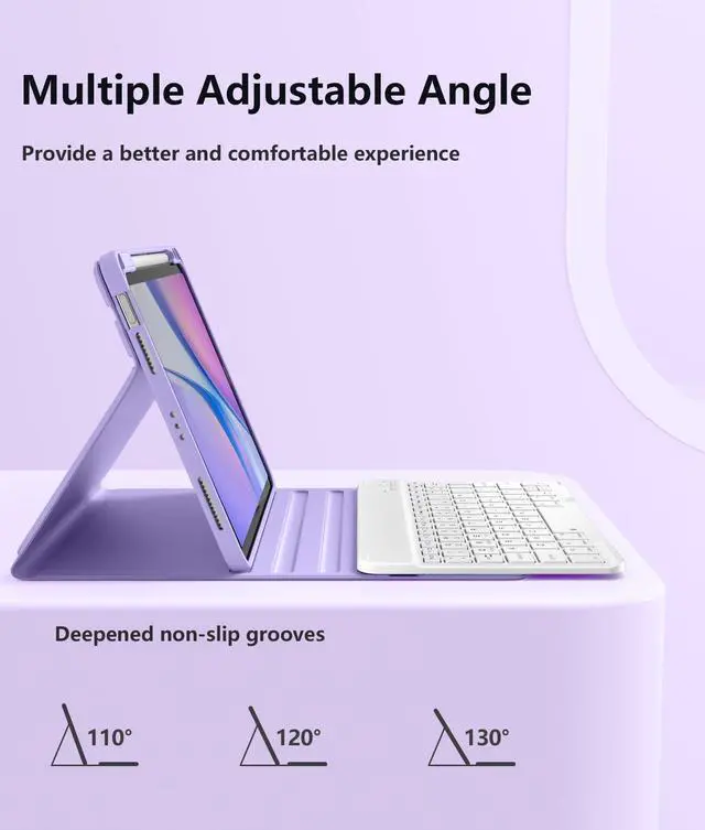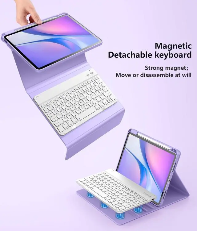 Magnetic Detachable Bluetooth Keyboard: For iPad Air 11 inch case with keyboard comes with a magnetic detachable lightweight Bluetooth keyboard. The wireless keyboard pairs with your tablet quickly via BT connection, and magnetically firmly attached to the case, which makes your tablet instantly become a portable laptop. You can also move the keyboard position or remove it as needed, which is easy for you to carry when you need to go out or travel