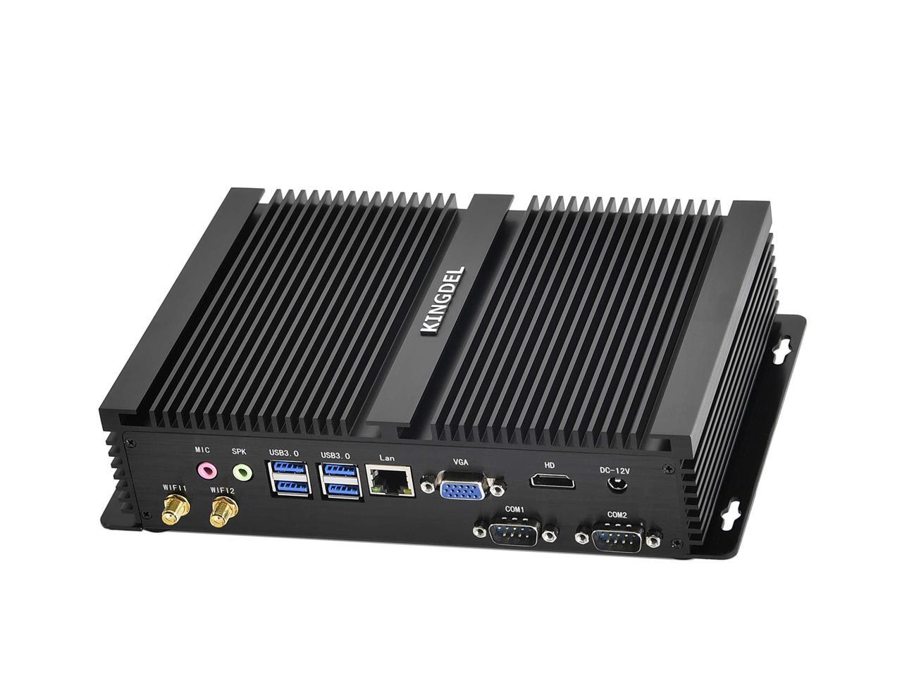 KINGDEL Fanless Industrial Computer, Mini PC, core i7 8th Gen. CPU, 16GB RAM 512GB NVMe SSD, 4K: 4096 x 2304, HD Port, VGA, 2xCOM RS232, Metal Case
