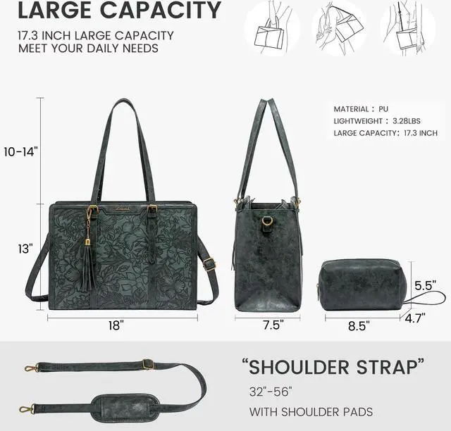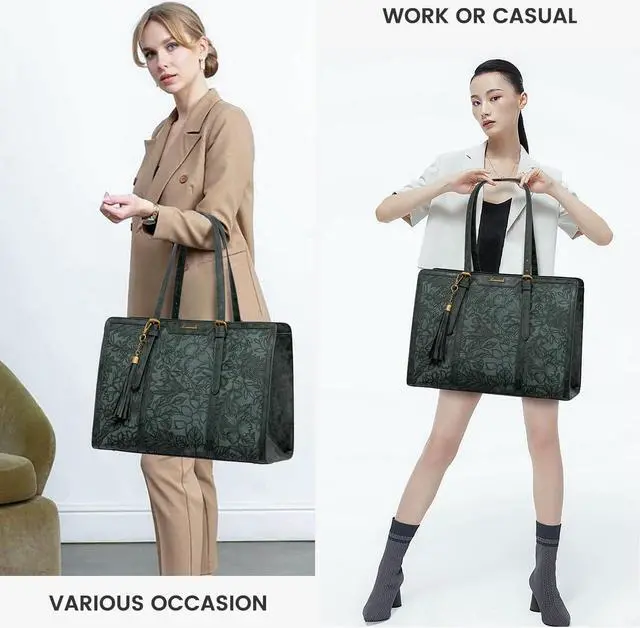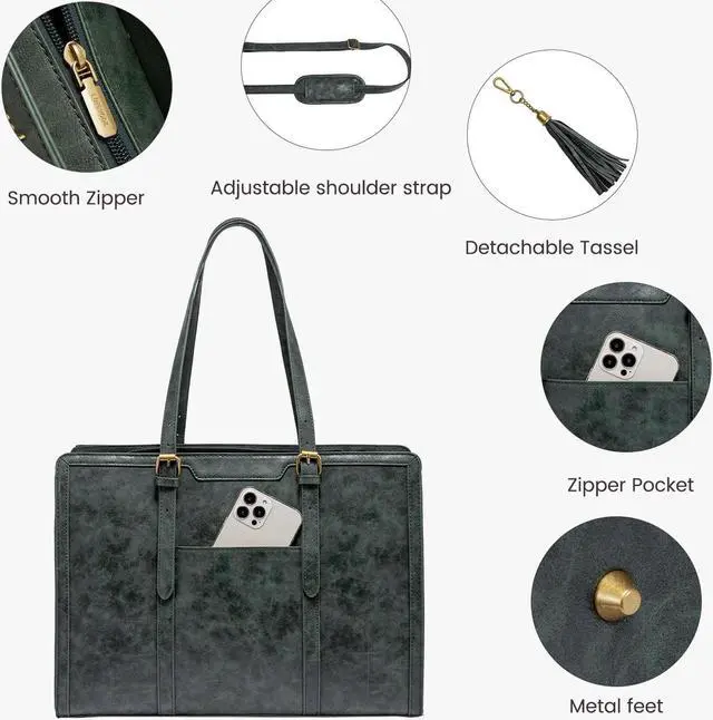 Elegant Laptop Tote Bag & Stand Upright This laptop bag for women combines vintage charm with modern fashion, making it a classic accessory that never goes out of style. Its metal feet ensure that the work bag stands upright and maintains its shape, adding to its overall sophisticated look.