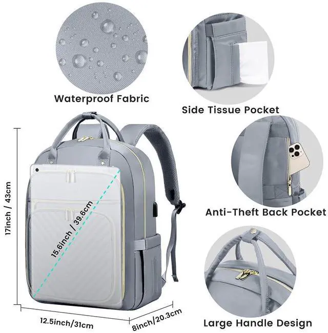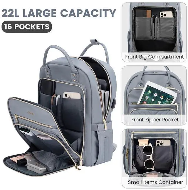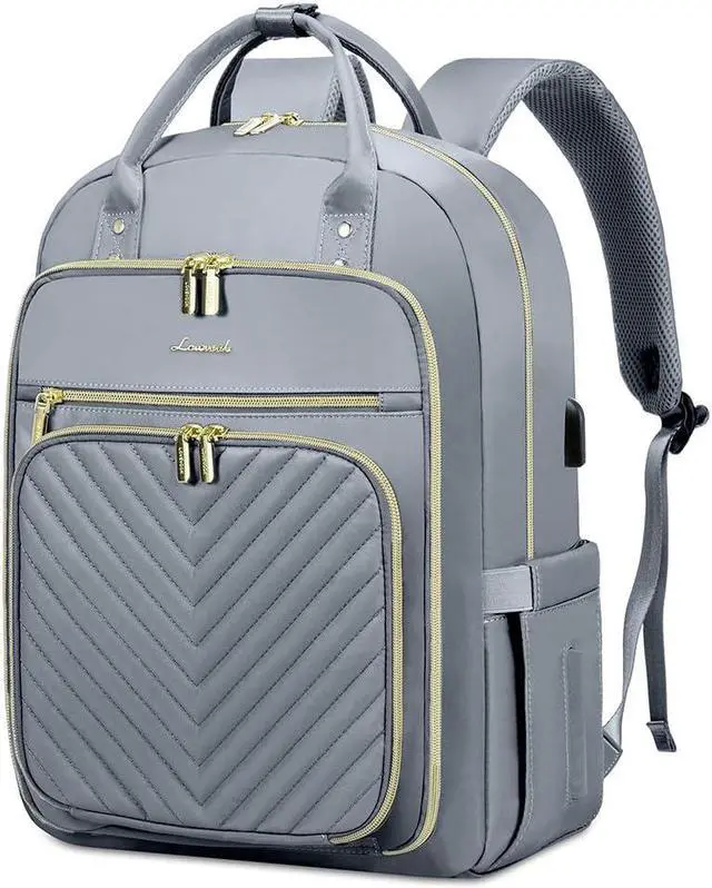 LOVEVOOK Laptop Backpack for Women, Water Resistant Travel Work Backpacks Purse Stylish Business Teacher Nurse Computer Bag with USB Charging Port, Gray