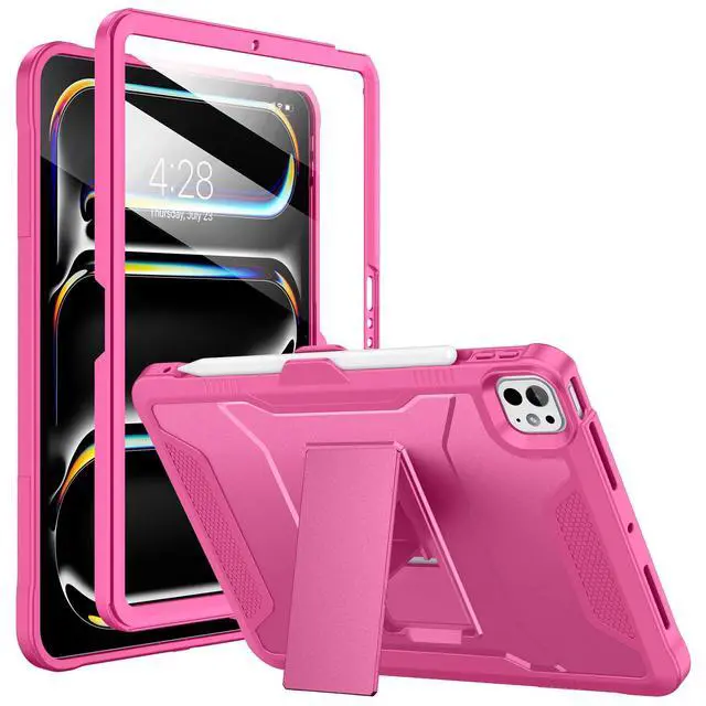 Soke Case for iPad Pro 11 Inch M4 (2024, 5th Generation), with Built-in Screen Protector and Kickstand, Rugged Full Body Protective Cover for Apple iPad Pro 11-Inch 5th Gen - Hot Pink