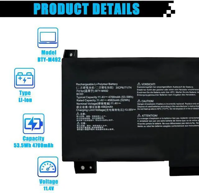 • SpecificationsItem Model: BTY-M492 ; Battery Type: Li-ion; Voltage: 11.4V; Capacity: 53.5Wh 4700mAh; Battery Condition: Brand New.