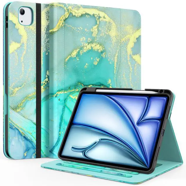ZoneFoker Case for iPad Air 11-inch M3/ M2 (2025/2024), iPad Air 5th/ 4th Generation 10.9'' (2022/2020), iPad Pro 11 (4th/3rd/2nd/1st Gen), Multi-Angle Stand Cover with Pencil Holder, Marble Green