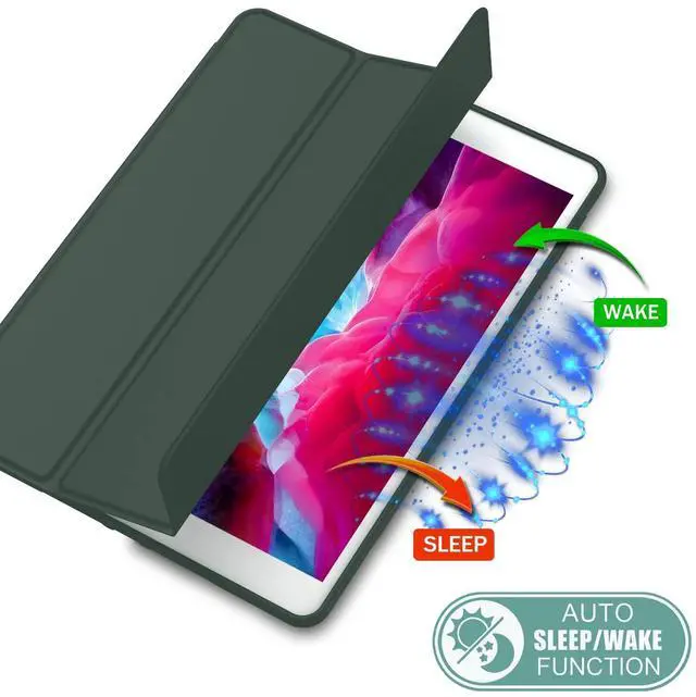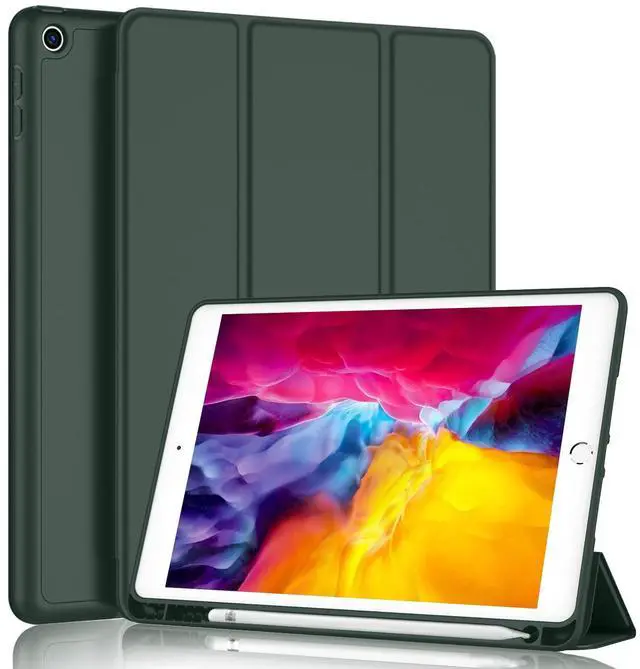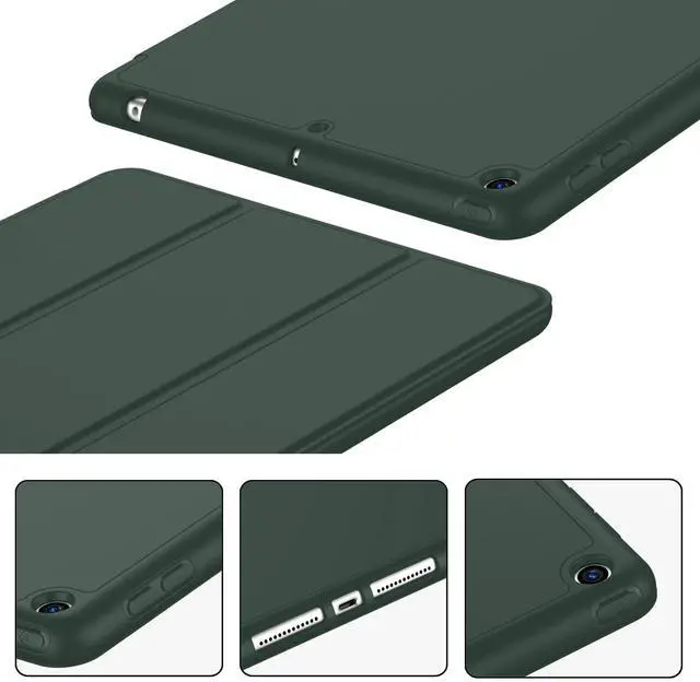 iMieet iPad 9.7 Case (2018/2017 Model, 6th/5th Generation), Smart Cover with Pencil Holder and Soft Baby Skin Silicone Back and Full Body Protection, Auto Wake/Sleep Cover (Dark Green)