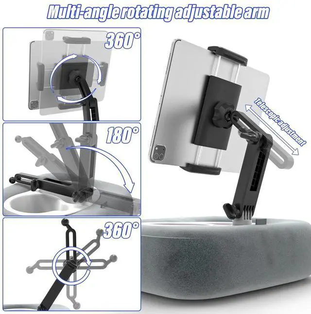 [Flexible Adjustment at Multiple Angles]: The LYFICCS kindle pillow stand features two adjustable arms, with a 180° rotating base, a 270° rotating middle section, and a 360° rotating clip. It also includes a height-adjustable telescopic arm, allowing users to set it at the most comfortable angle according to their needs. It is convenient to use whether on a bed, sofa, or table.