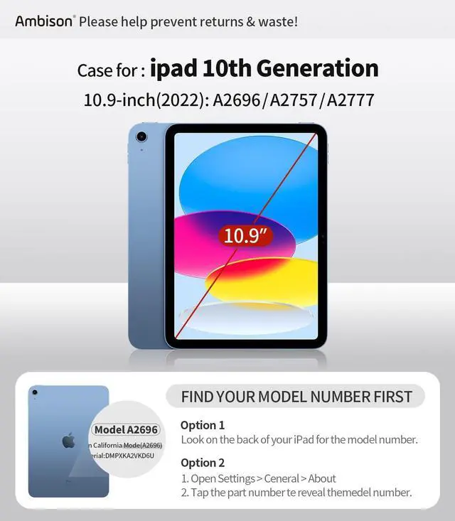 Exclusively designed: iPad (A16) 11th Generation 11 inch/ 10th Generation 10.9 inch (Model includes: A3354/A3355/A3356 A2696/A2757/A2777) 2025/2022 Released. [With Screen Protector] DO NOT fit other iPad