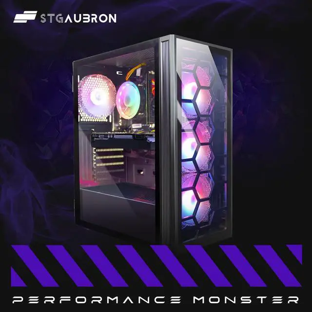 STGAubron Gaming PC Computer Desktop, Intel Core i7 8th Gen up to 4.1G, GeForce RTX 2060 6G, 16G DDR4, 512G SSD, WiFi 6, BT 5.2, RGB Fan x4, Windows 11 Home