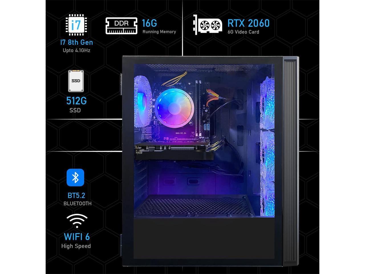 STGAubron Gaming PC Computer Desktop, Intel Core i7 8th Gen up to 4.1G, GeForce RTX 2060 6G, 16G DDR4, 512G SSD, WiFi 6, BT 5.2, RGB Fan x4, Windows 11 Home