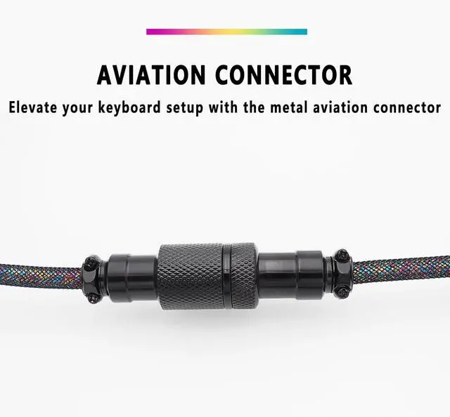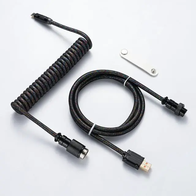 ELEXCLAIM Coiled Keyboard Cable USB-C to USB-A 1.5M, Double-Sleeved Braided with Detachable 5-Pin Aviator Connector for Gaming Keyboards (Multicoloured Black)