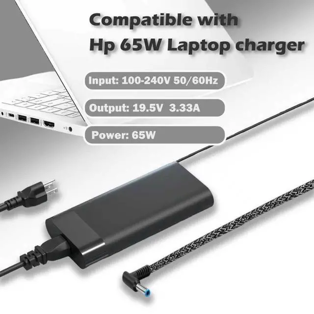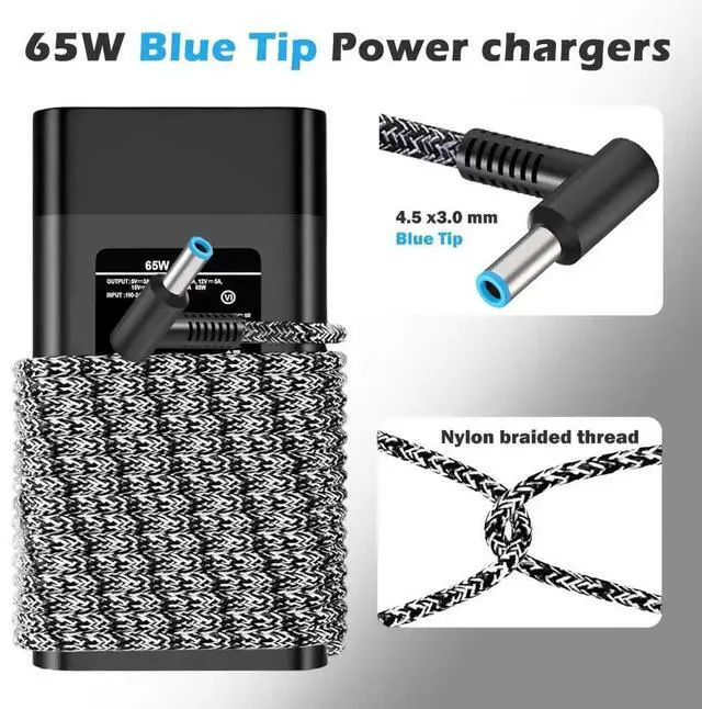 Smart 65W/45W Dual Output Delivers 19.5V/3.33A (65W) or 19.5V/2.3A (45W) with universal smart blue tip connector (4.5x3.0mm). Safely powers HP laptop charger-compatible devices and high-performance HP Envy/Pavilion laptops without overloading.