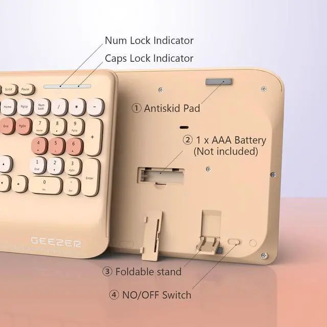 Sleep Function- If you do not use the keyboard for more than a minute, the keyboard will go into sleep mode, which is a good extension of battery life, click the mouse or any button on the keyboard to wake up