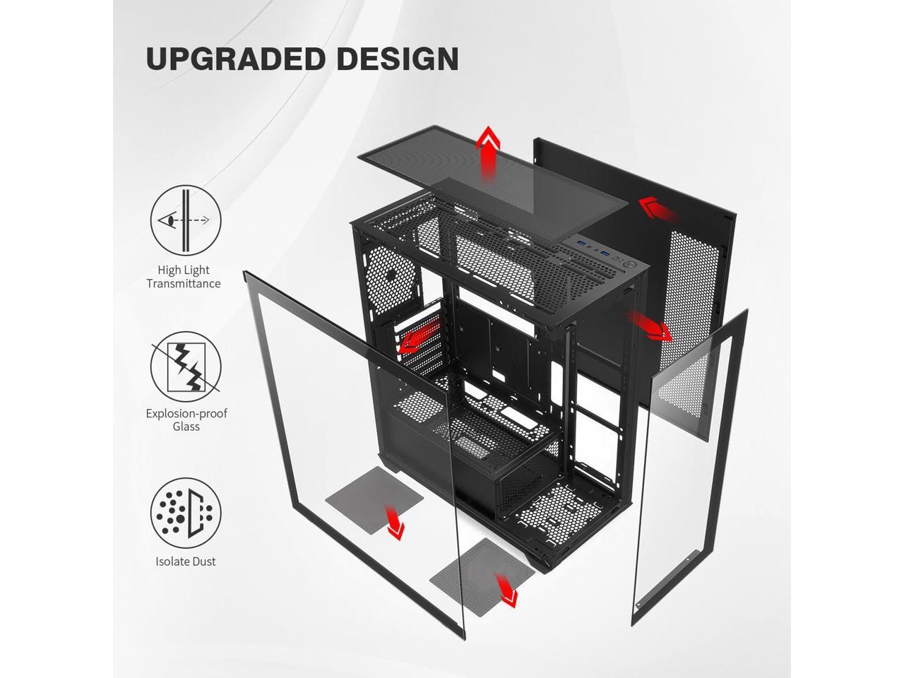 - Tempered Glass Side Panel Features a sleek tempered glass side panel that showcases your internal components while maintaining structural integrity with a reinforced steel frame.