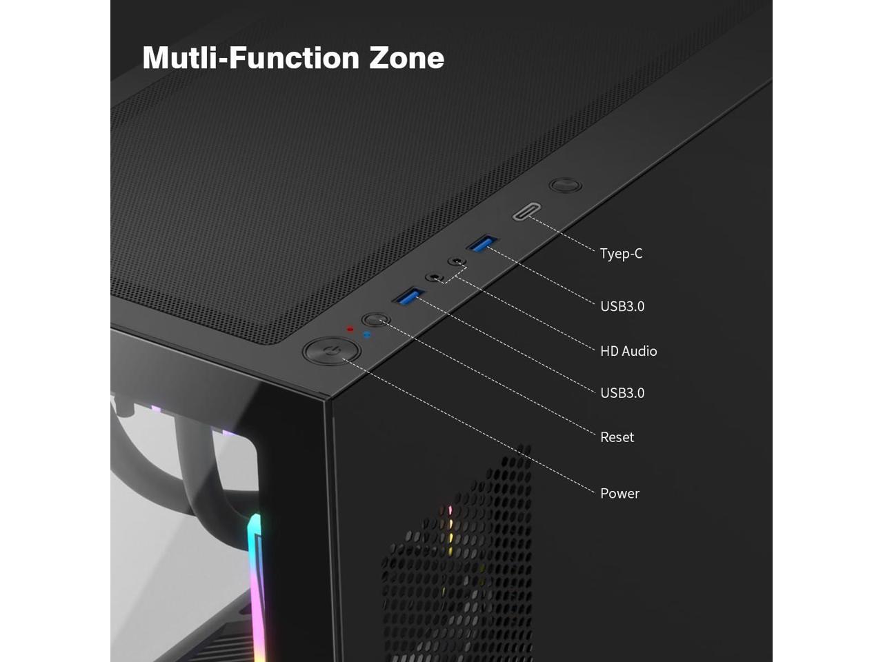 - Modern Connectivity Equipped with USB 3.0, USB 2.0, Type-C, and HD audio ports on the front panel, offering wide compatibility and high-speed data transmission.