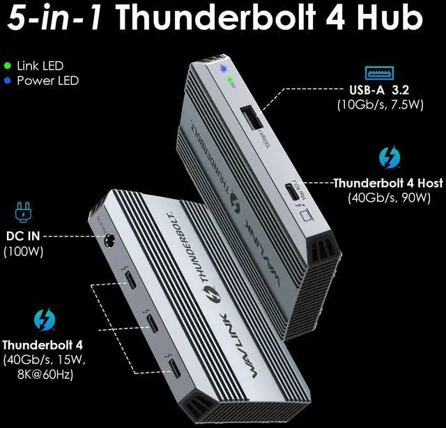 Bringing technology to life: Do you want to experience the latest technology? Enjoy the convenience of technology with this Thunderbolt 4 docking station from WAVLINK. It comes with 1x upstream Thunderbolt 4 port (40Gb/s; 96W), 1x downstream Thunderbolt 4 port (8K@60Hz; 40Gb/s; PD15W), 2x HDMI (4K@60Hz) video ports, 1x 2.5G RJ45 Ethernet, 4x USB-A, 1x USB-C, 1x 3.5 mm audio/microphone, 1x SD card slot. mm audio/microphone, 1x SD card slot. Enjoy what you want