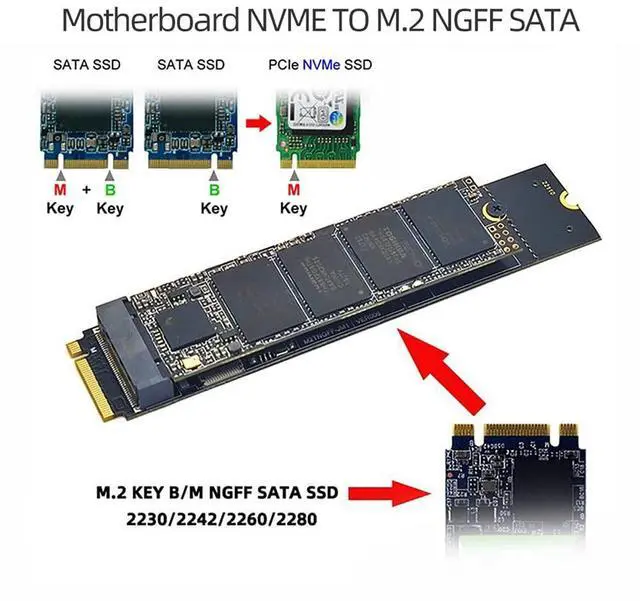 Cablecc SATA NGFF Key B+M SSD to NVME M-Key Motherboard Desktop Adapter Converter SSD Card JMB582 2280