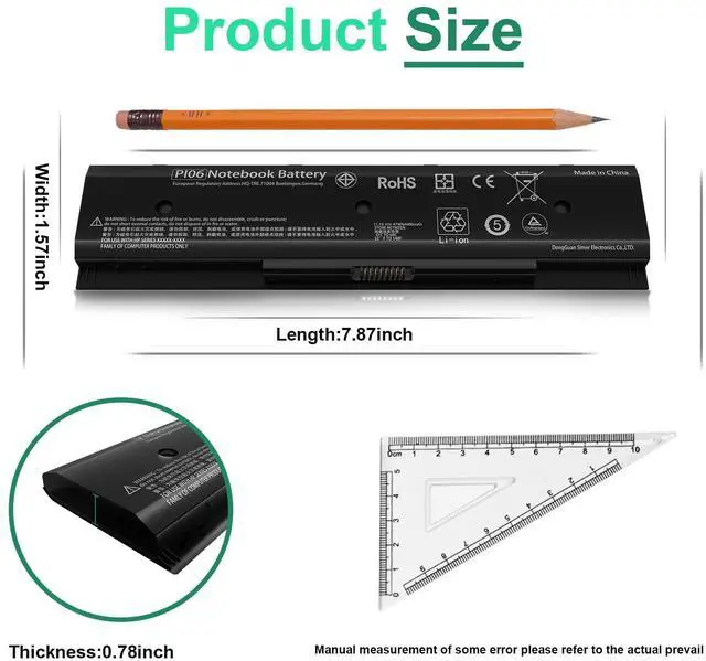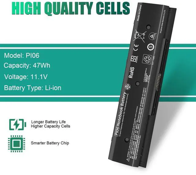 • SpecificationsType: P106 PI06 PI09 lithium_ion Battery.Capacity: 47WH 4400MAH. Voltage: 11.1V.Cells: 6-cell. Color: Black.Condition: Brand new