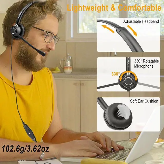 Lightweight & All-Day ComfortThis headphone with microphone weighs only 102.6g/3.62oz, and is designed for a lightweight, comfortable fit. Soft breathable leather ear cushions offer optimal comfort during extended wear. 330° rotatable microphone boom