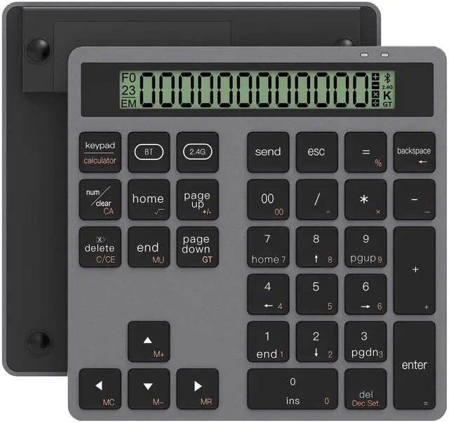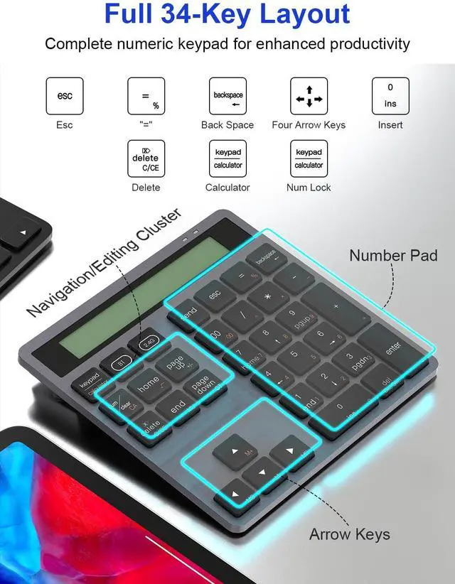 Bluetooth Number Pad - 2.4G Wireless Numeric Keypad with Display Calculator - Wireless Number Pad Slim 34-Key Portable Financial Accounting Numpad Data Entry & Calculation 2in1 for Laptop MacBook PC