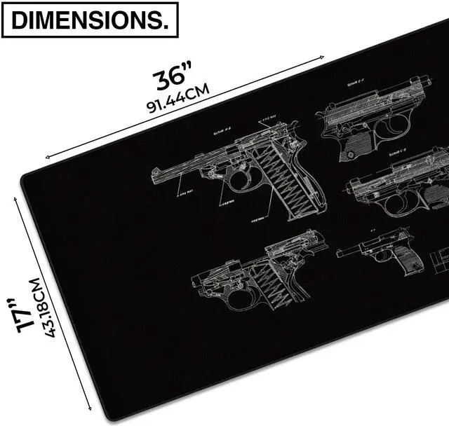 MPCO. Blueprints Large Gaming Desk Pad - 36" x 17" Aeroglyde Fabric Pistol 38 Black Desk Mats - Non-Slip, Washable, Smooth Glide for Precision Gaming & Work