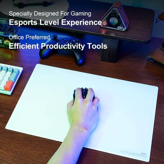LANGBOHOS Glass Mouse Pad Micro Etched Surface and Whole Silicone Base, Improved Precision and Speed, Durable, Easy to Clean, Suitable for Gaming and Office Use (White- 19.7 * 16'')